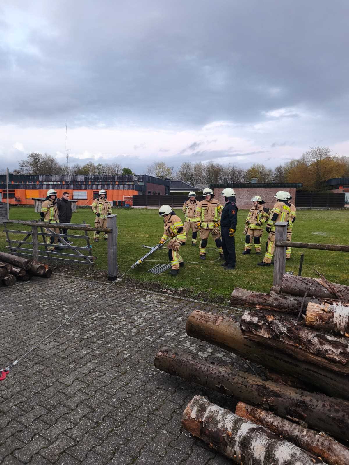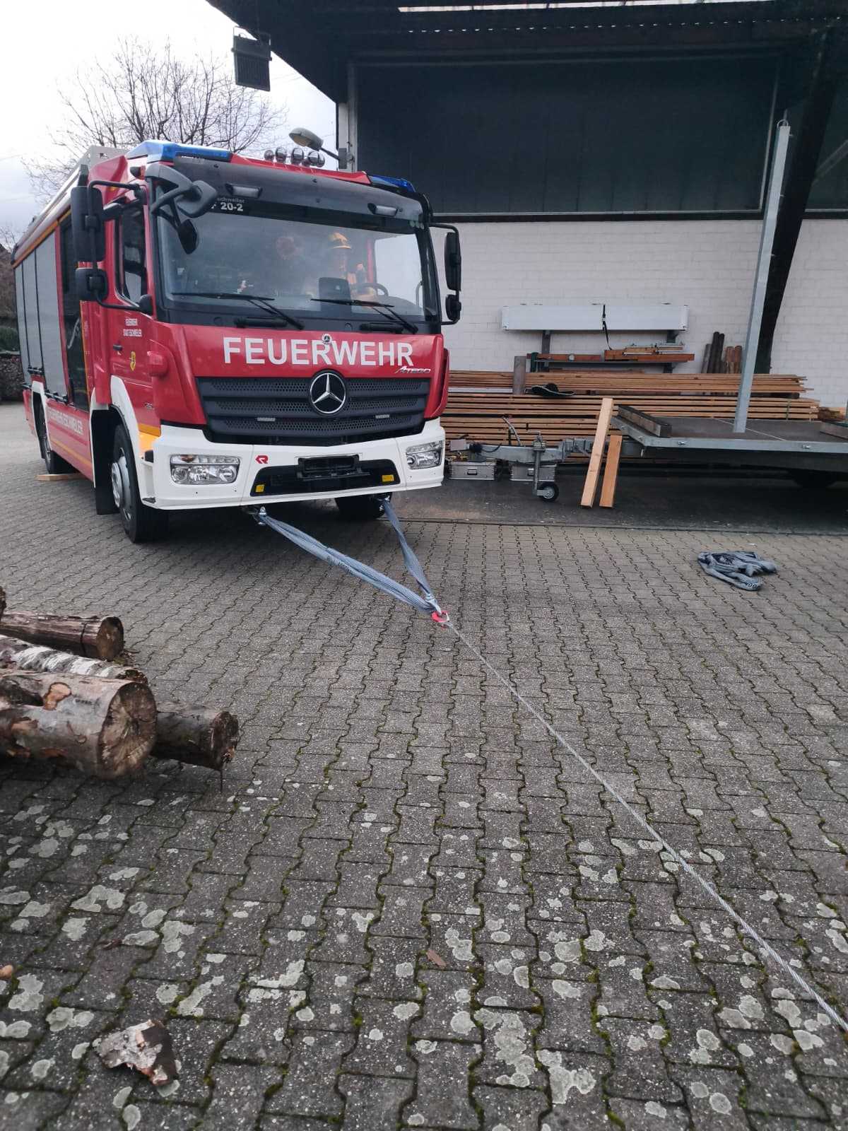 Kurz vor Ostern diesen Jahres haben wir den Mehrzweckzug 16 aus unserem HLF 20-2 heraus geholt und geschult. Auf dem Gelände der Firma Holzbau Engels haben wir verschiedene Szenarien durchgespielt. Unter anderem wurden Erdnägel als Festpunkt für den MZ 16 im Boden befestigt, unterschiedliche Lasten bewegt und Umlenkrollen zum Einsatz gebracht.