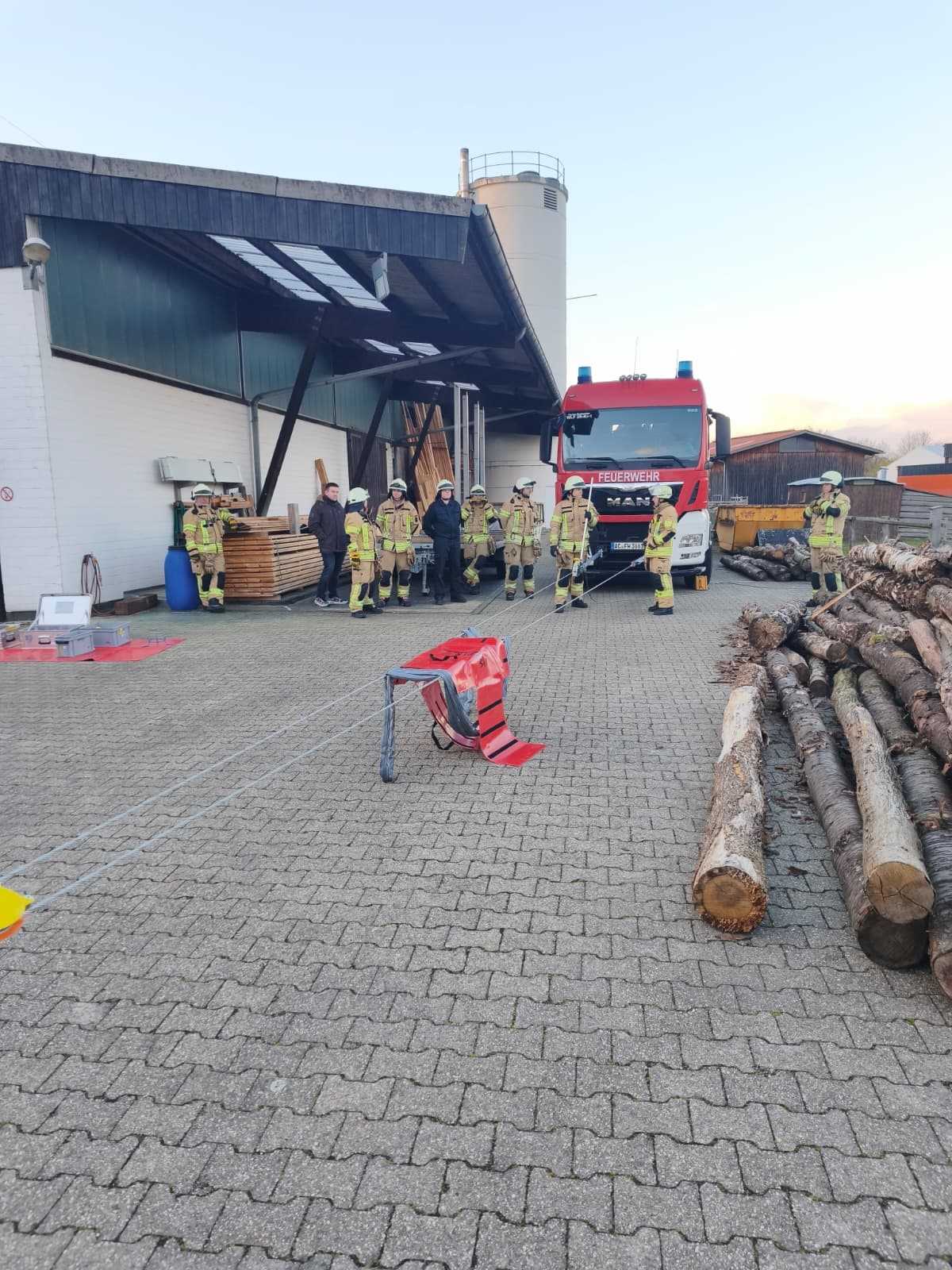 Jugendfeuerwehr übt bei Holzbau Engels