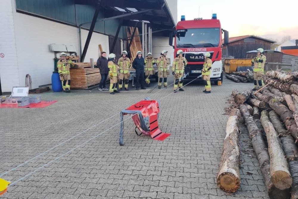 Jugendfeuerwehr übt bei Holzbau Engels