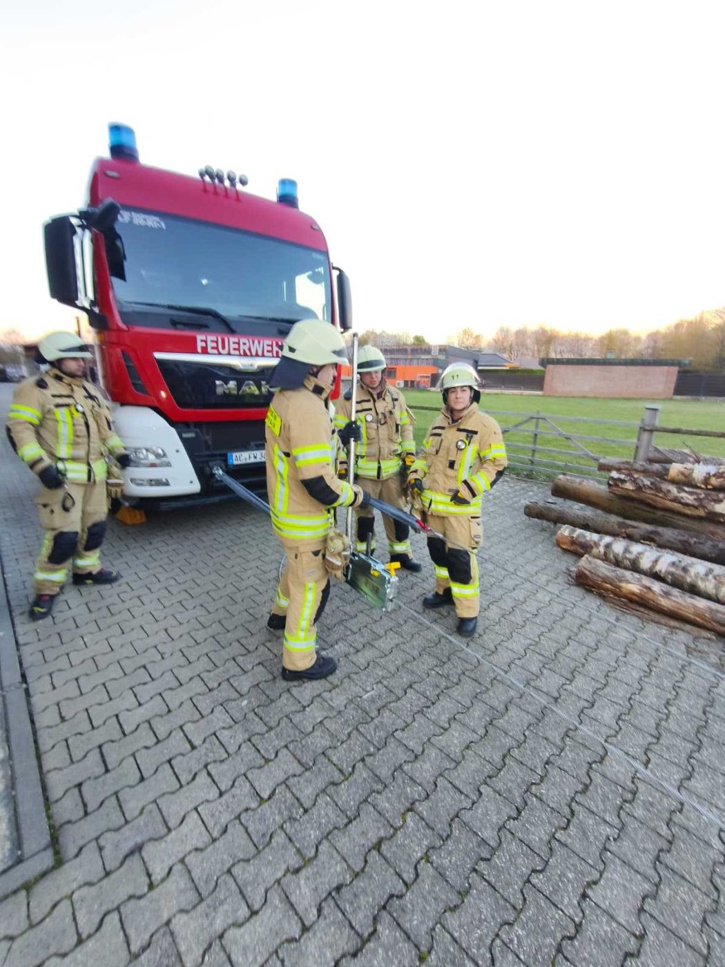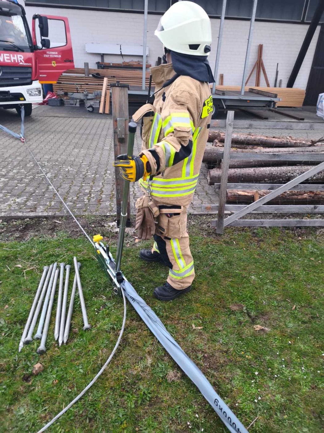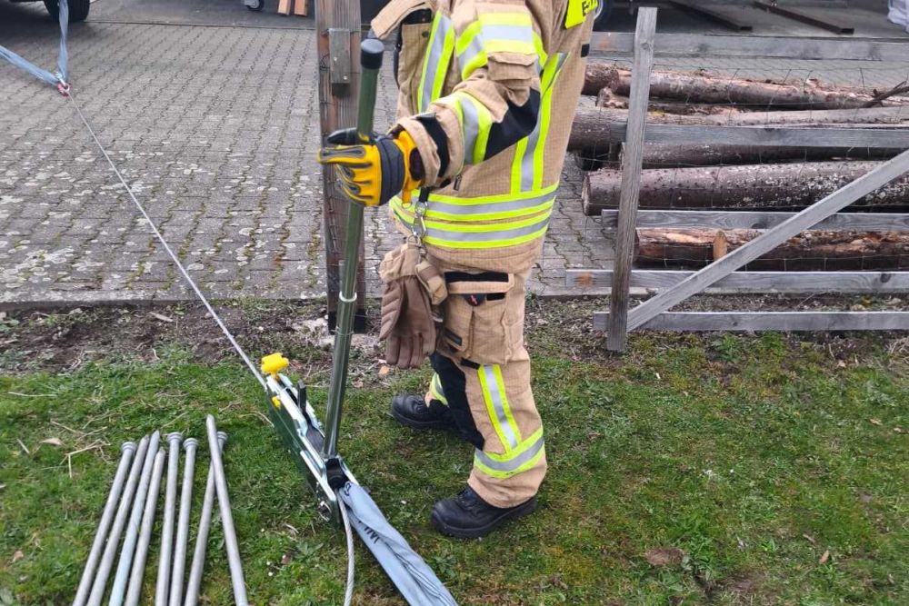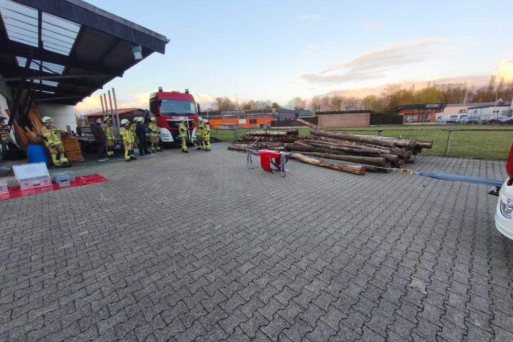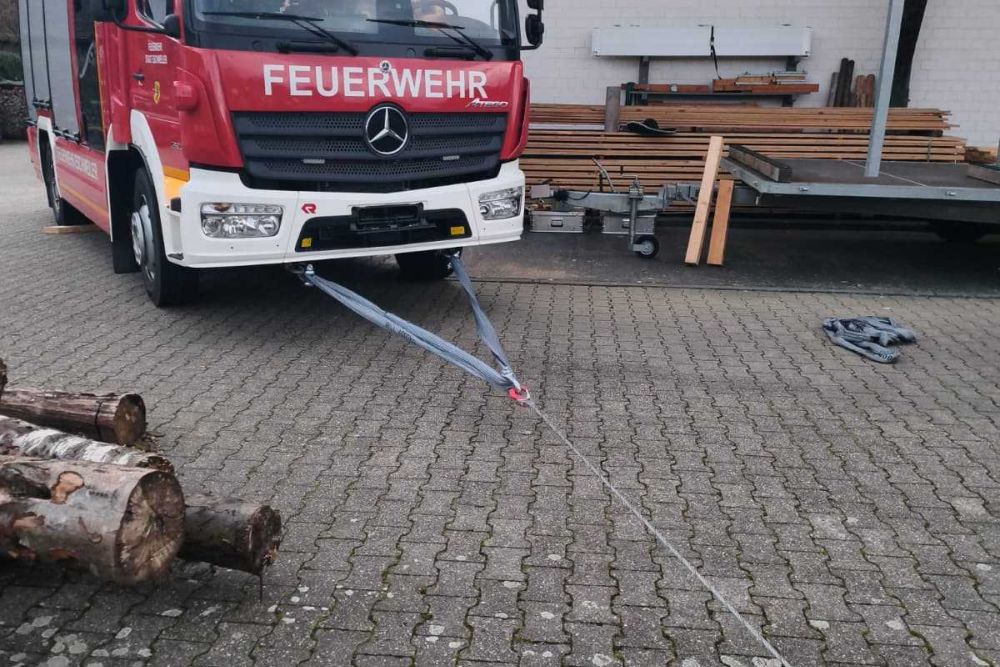 Kurz vor Ostern diesen Jahres haben wir den Mehrzweckzug 16 aus unserem HLF 20-2 heraus geholt und geschult. Auf dem Gelände der Firma Holzbau Engels haben wir verschiedene Szenarien durchgespielt. Unter anderem wurden Erdnägel als Festpunkt für den MZ 16 im Boden befestigt, unterschiedliche Lasten bewegt und Umlenkrollen zum Einsatz gebracht.
