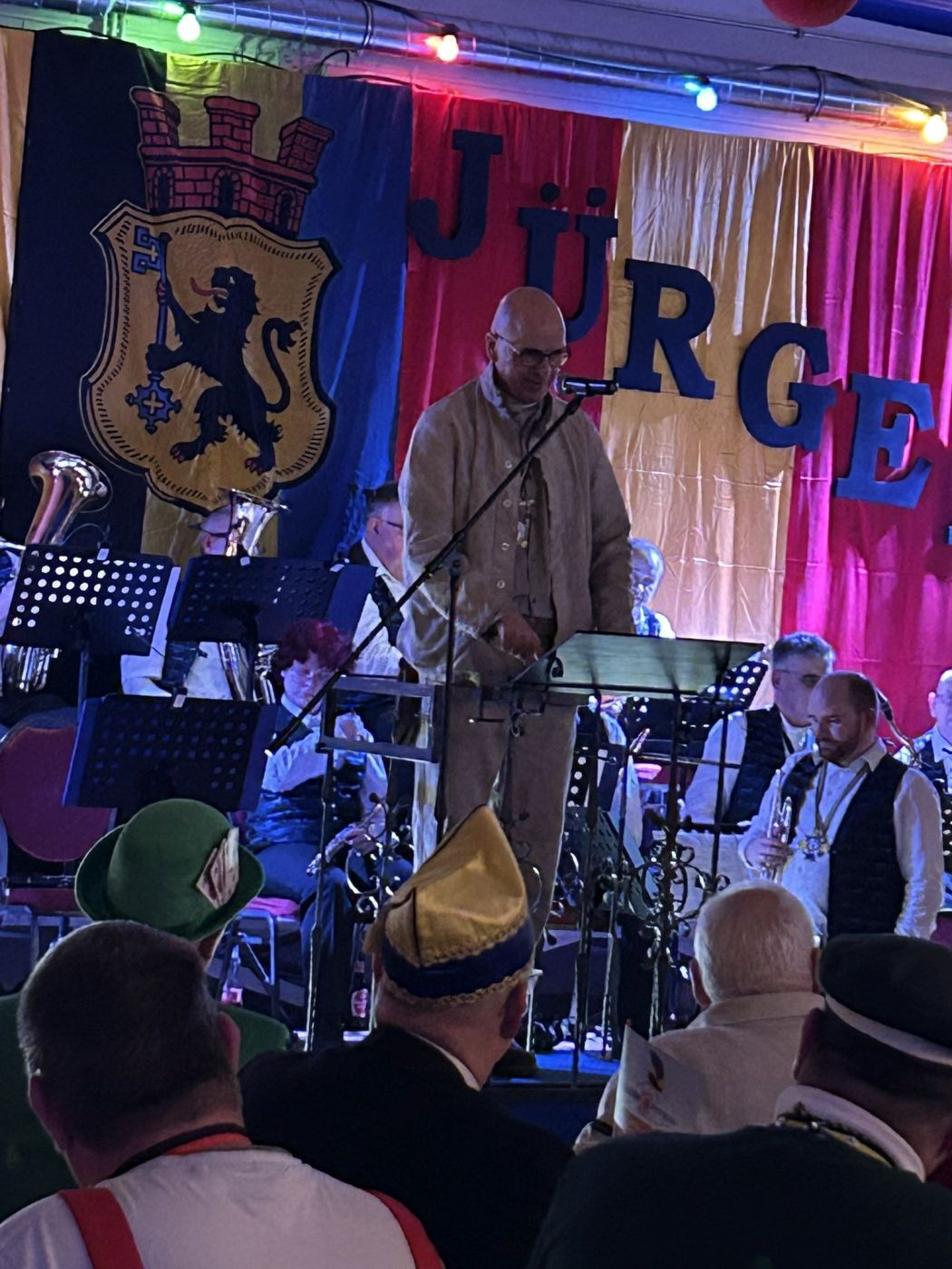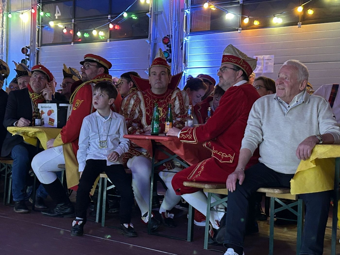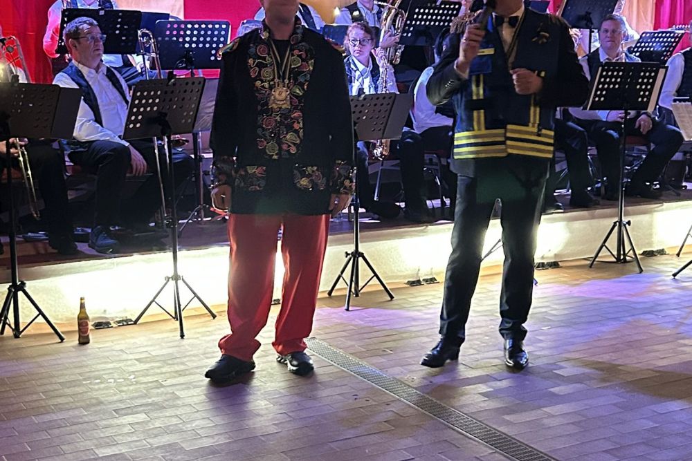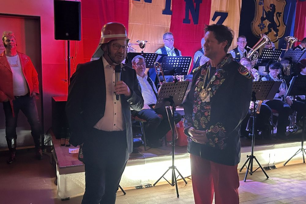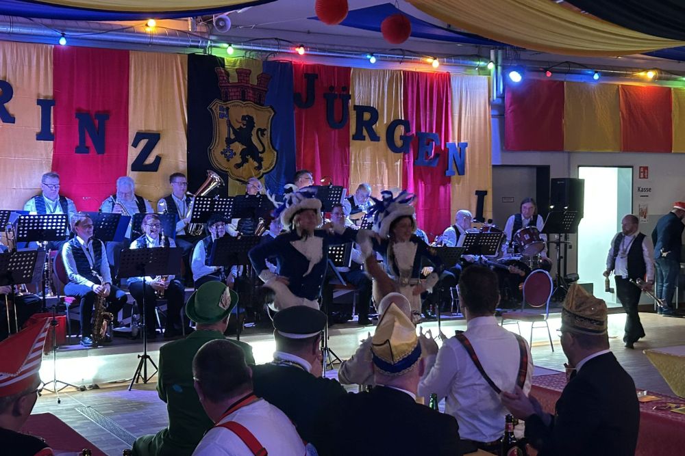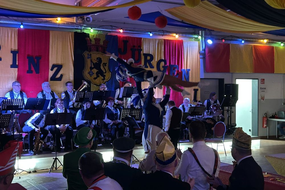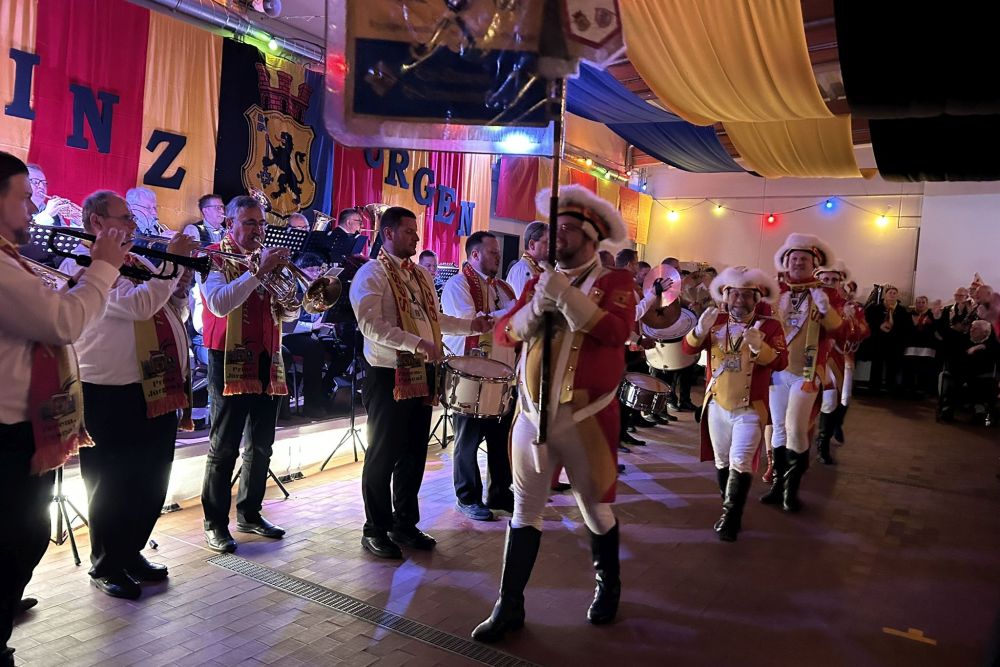 Dann folgte der erste große Höhepunkt des Abends – Prinz Jürgen I. und sein Zeremonienmeister Pascal mit ihrem gesamten Tross fluteten den Saal! Wie es die Tradition will, wurden beide von unserem Wehrleiter Christian Haake mit der besonderen Ehrentafel zum Prinzenempfang geehrt. Anschließend durften beide in der ersten Reihe Platz nehmen und zwei Stunden lang das Programm genießen.