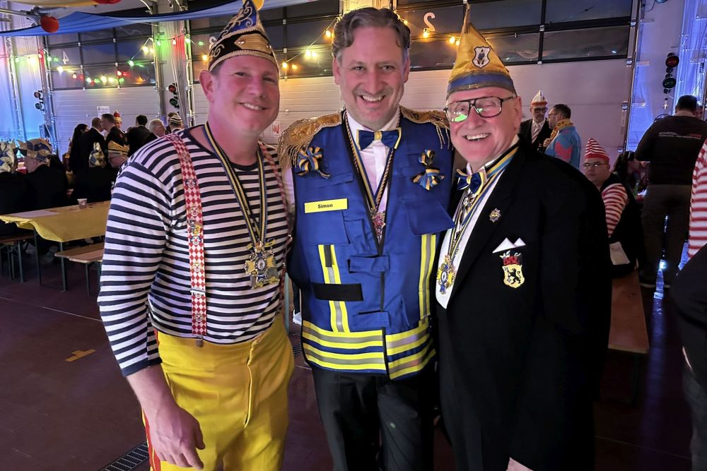 Und dann wurde unserem Sitzungsleiter Simon Hendriks noch eine besondere Überraschung bereitet. Nachdem unser Wehrleiter Christian Haake ihn im vergangenen Jahr im Spaß zum "Fachberater Karneval" ernannt hatte, wurde dieser Akt in diesem Jahr zementiert. Simon erhielt eine einzigartige Funktionsweste mit Kennzeichnung seiner besonderen Expertise. Ab sofort kann und darf er sich so bei uns kenntlichmachen!