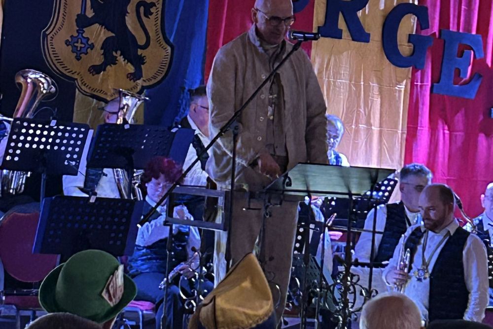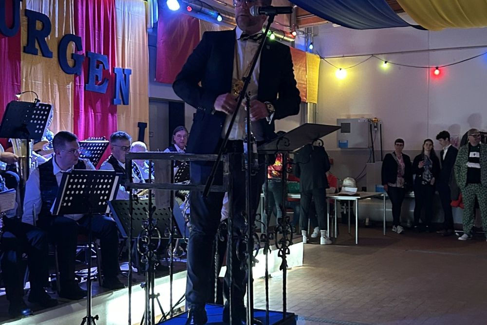 Nach Austausch der Orden und Ansprache unseres Prinzen folgte eine weitere Büttenrede. . Dr. Christoph Herzog, alias Der Steiger, bestieg die Bütt. Und alle Anwesenden hingen an seinen Lippen, während er zahlreiche Anekdoten aus dem Leben mit seiner Elke berichtete. Kein Auge blieb bei diesem Vortrag vor Lachen trocken!