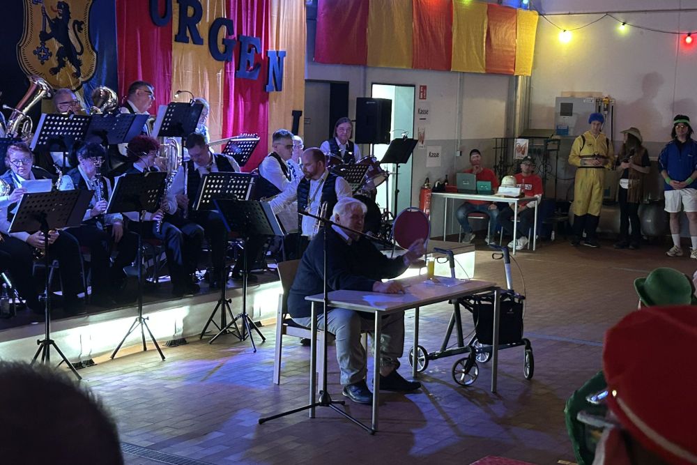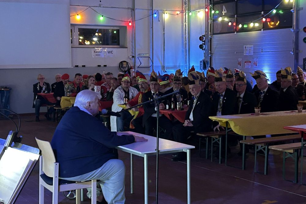 Im Anschluss betrat unser Freund und Ehrenhelmträger René Külzer die Bühne - seit mehr als 30 Jahre ist René regelmäßiger Gast bei uns und verstärkt unsere Sitzung phänomenal. In gewohnter Weise berichtete René, vielen auch als das Scharwachmüsje bekannt, über viele Dinge, die ihm im letzten Jahr so passiert sind. Und natürlich bekamen auch viele Anwesende im Saal ihr Fett weg und wurden super in die Rede integriert.
