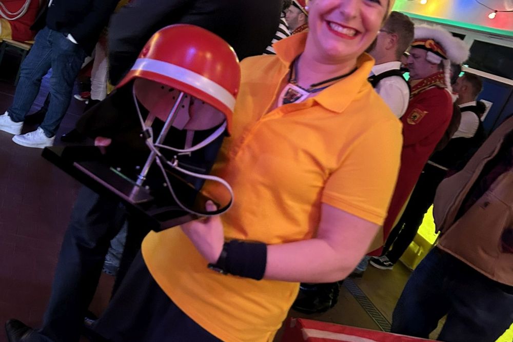 Danach folgte ein weiterer Höhepunkt jeden Prinzenempfangs. Die Verleihung des Ehrenhelms 2026! Viele herausragende Vertreter aus Lokalpolitik, Karneval, Ehrenamt und öffentlichem Leben in Eschweiler haben diesen Ehrenhelm in den vergangenen mehr als 20 Jahren erhalten. Unser Ehrenhelmträger 2024 Guido Massmeier von unseren Freunden vom THW stand uns als Laudator ein weiteres Mal zur Verfügung und machte es bei seiner gelungenen Rede spannend, wem denn in diesem Jahr diese Ehre zu Teil wurde. Wie wir durch Guidos Worte lernen durften, ist unser diesjähriger Ehrenhelmträger bereits seit 25 Jahren in Eschweiler angekommen und tätig. Kein geringer als der Geschäftsführer unseres St. Antonius Hospitals, Elmar Wagenbach, durfte den Ehrenhelm 2026 aus den Händen von Christian Haake entgegennehmen.
