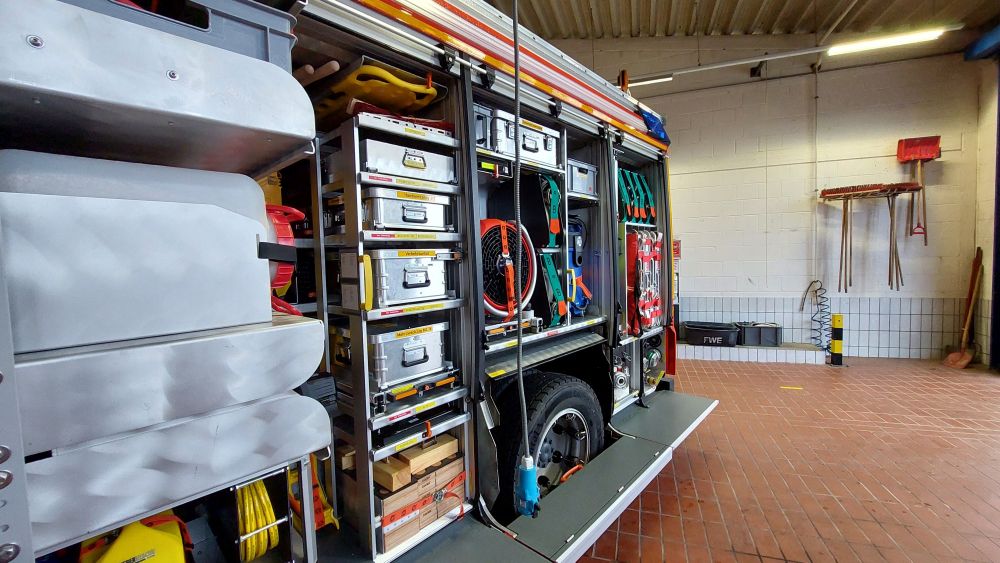 Akku-Technik, die die Nutzung von Generatoren überflüssig macht und damit die Vorbereitungszeit im Einsatzfall spürbar verkürzt. Neuerungen gegenüber den Vorgängermodellen sind darüber unter anderem eine dreiteilige Schiebleiter, die bis zum dritten Obergeschoss genutzt werden kann, ein 120-Liter-