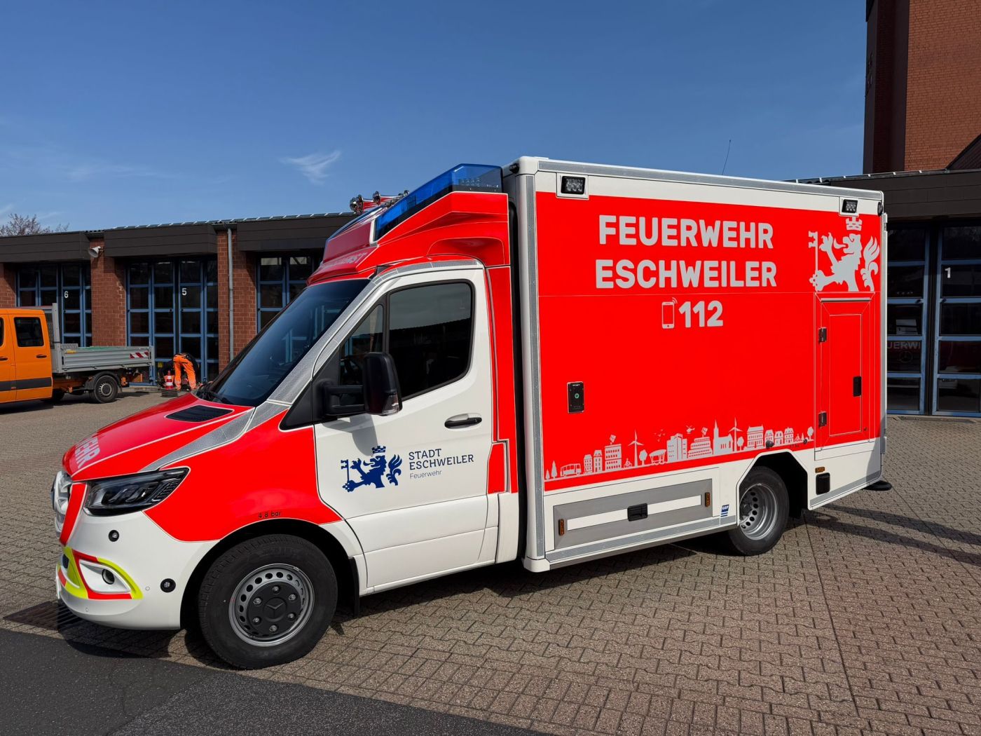 Mit diesem Projekt verfolgt die Feuerwehr Eschweiler zudem bewusst einen nachhaltigen und wirtschaftlichen Ansatz. Es handelt sich hierbei um das zweite Umsetzungsprojekt dieser Art, zwei weitere werden folgen. Durch die Weiterverwendung und Grundüberholung des vorhandenen Kofferaufbaus in Kombination mit einem neuen Fahrgestell konnte eine kostengünstigere Lösung im Vergleich zu einer vollständigen Neubeschaffung (Unterschied ca. 100.000 €) umgesetzt werden. Gleichzeitig trägt dieses Vorgehen dazu bei, den derzeit teilweise sehr langen Lieferzeiten bei Neufahrzeugen entgegenzuwirken. Aus diesen Gründen hat sich die Feuerwehr Eschweiler gezielt für dieses Konzept entschieden. Auch bei der nächsten Beschaffung eines Rettungswagens ist eine vergleichbare Umsetzung vorgesehen.