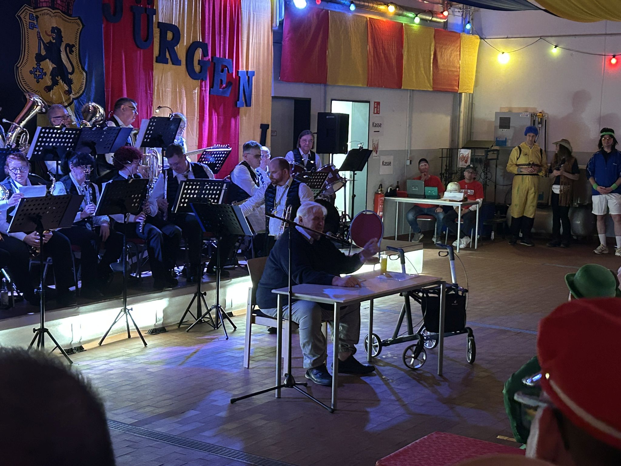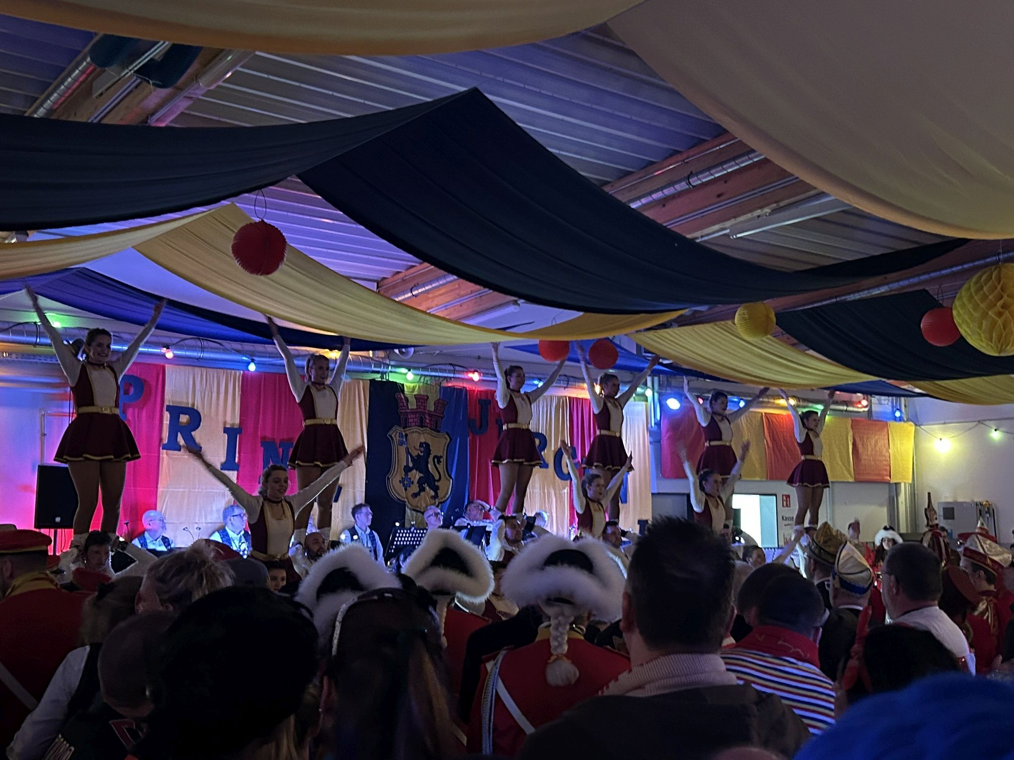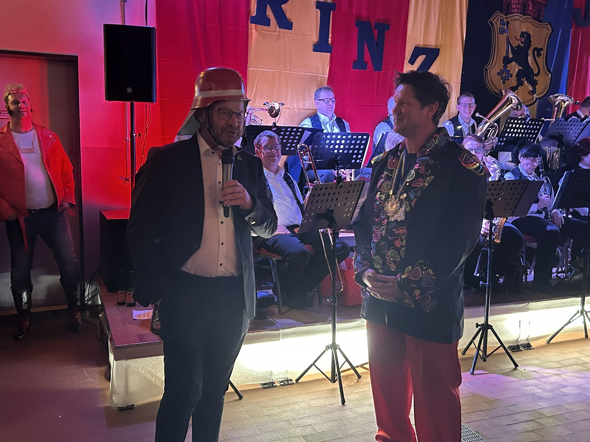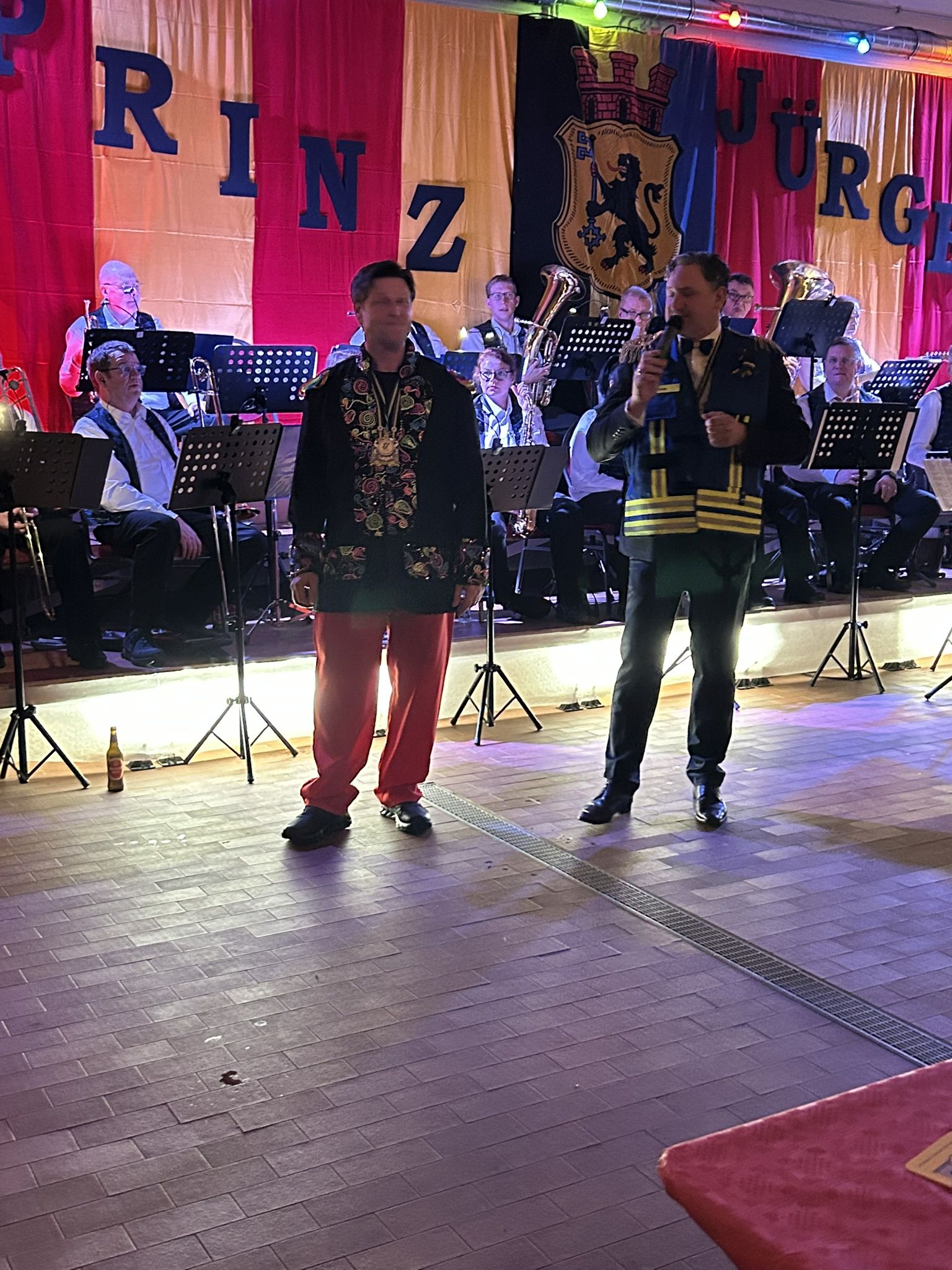 Dann folgte der erste große Höhepunkt des Abends – Prinz Jürgen I. und sein Zeremonienmeister Pascal mit ihrem gesamten Tross fluteten den Saal! Wie es die Tradition will, wurden beide von unserem Wehrleiter Christian Haake mit der besonderen Ehrentafel zum Prinzenempfang geehrt. Anschließend durften beide in der ersten Reihe Platz nehmen und zwei Stunden lang das Programm genießen.