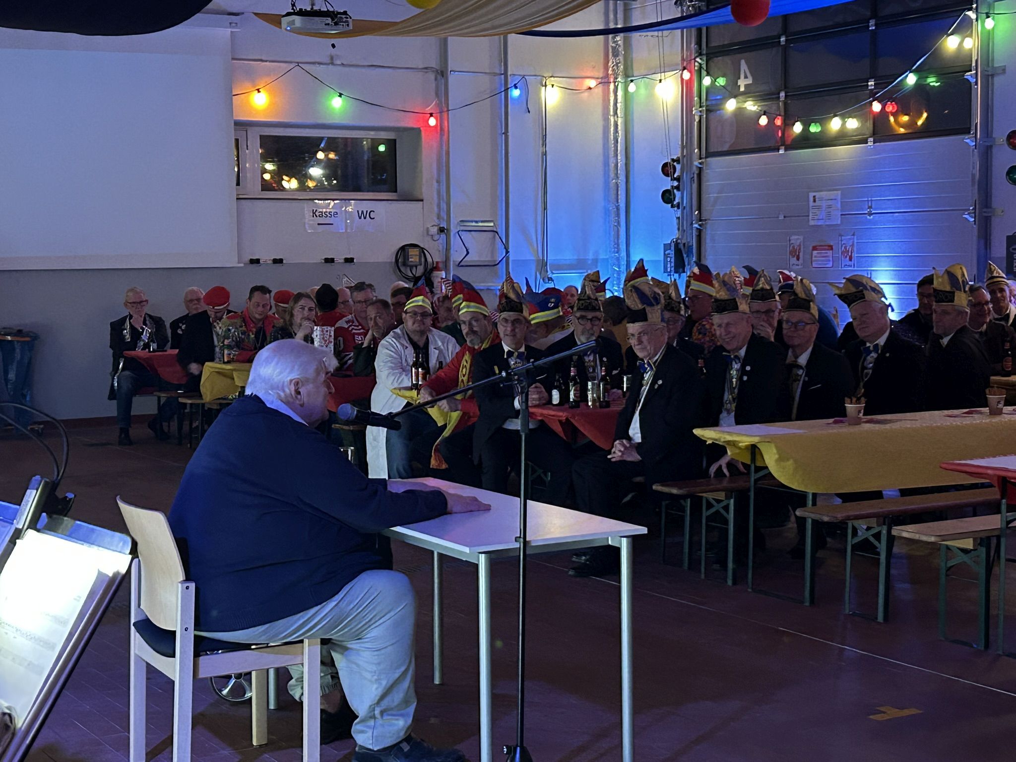 Im Anschluss betrat unser Freund und Ehrenhelmträger René Külzer die Bühne - seit mehr als 30 Jahre ist René regelmäßiger Gast bei uns und verstärkt unsere Sitzung phänomenal. In gewohnter Weise berichtete René, vielen auch als das Scharwachmüsje bekannt, über viele Dinge, die ihm im letzten Jahr so passiert sind. Und natürlich bekamen auch viele Anwesende im Saal ihr Fett weg und wurden super in die Rede integriert.