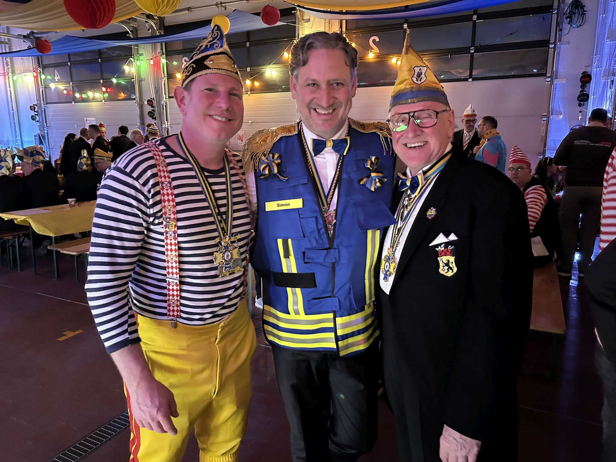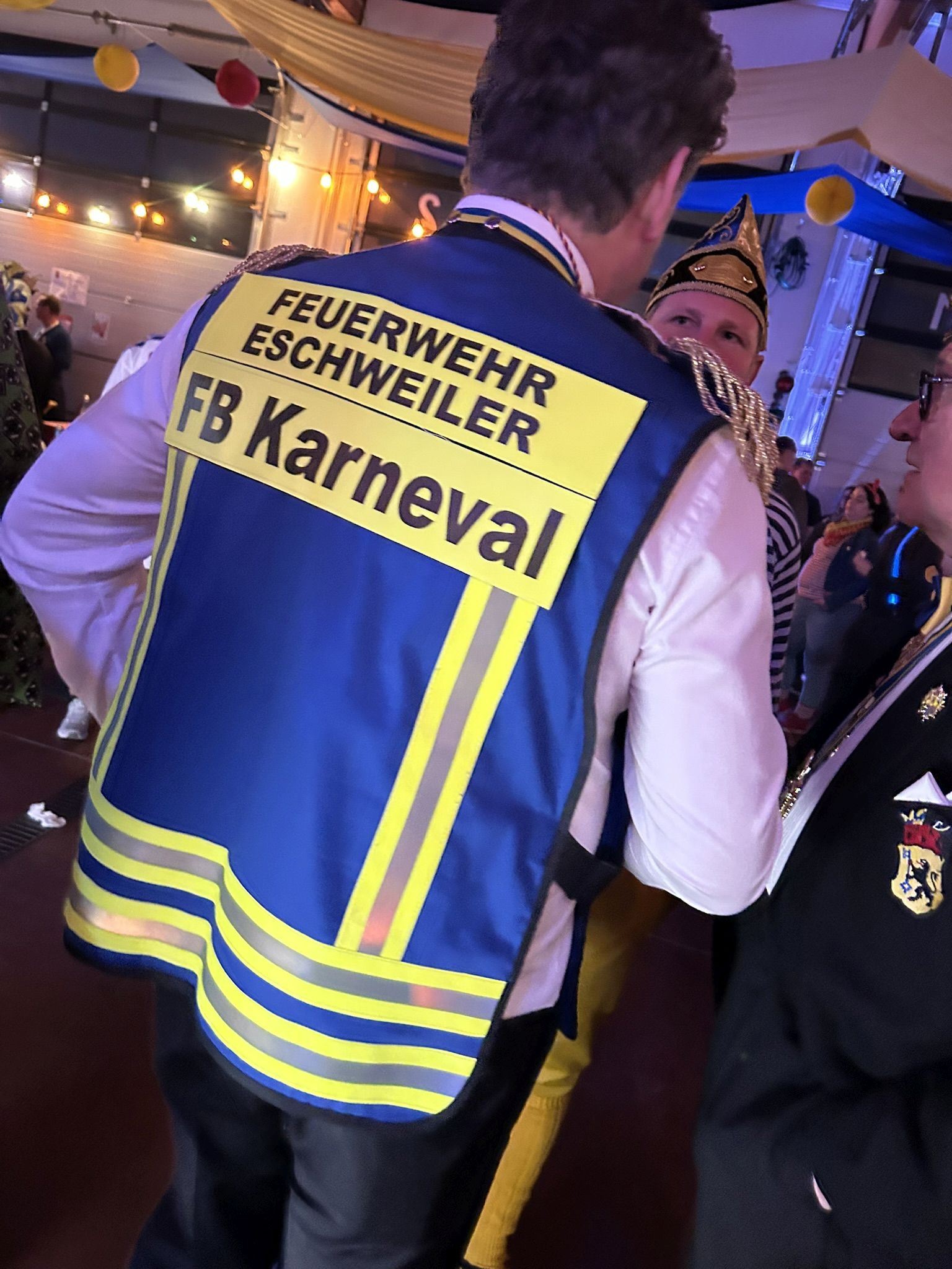 Und dann wurde unserem Sitzungsleiter Simon Hendriks noch eine besondere Überraschung bereitet. Nachdem unser Wehrleiter Christian Haake ihn im vergangenen Jahr im Spaß zum "Fachberater Karneval" ernannt hatte, wurde dieser Akt in diesem Jahr zementiert. Simon erhielt eine einzigartige Funktionsweste mit Kennzeichnung seiner besonderen Expertise. Ab sofort kann und darf er sich so bei uns kenntlichmachen!