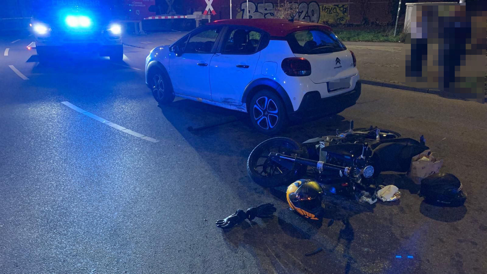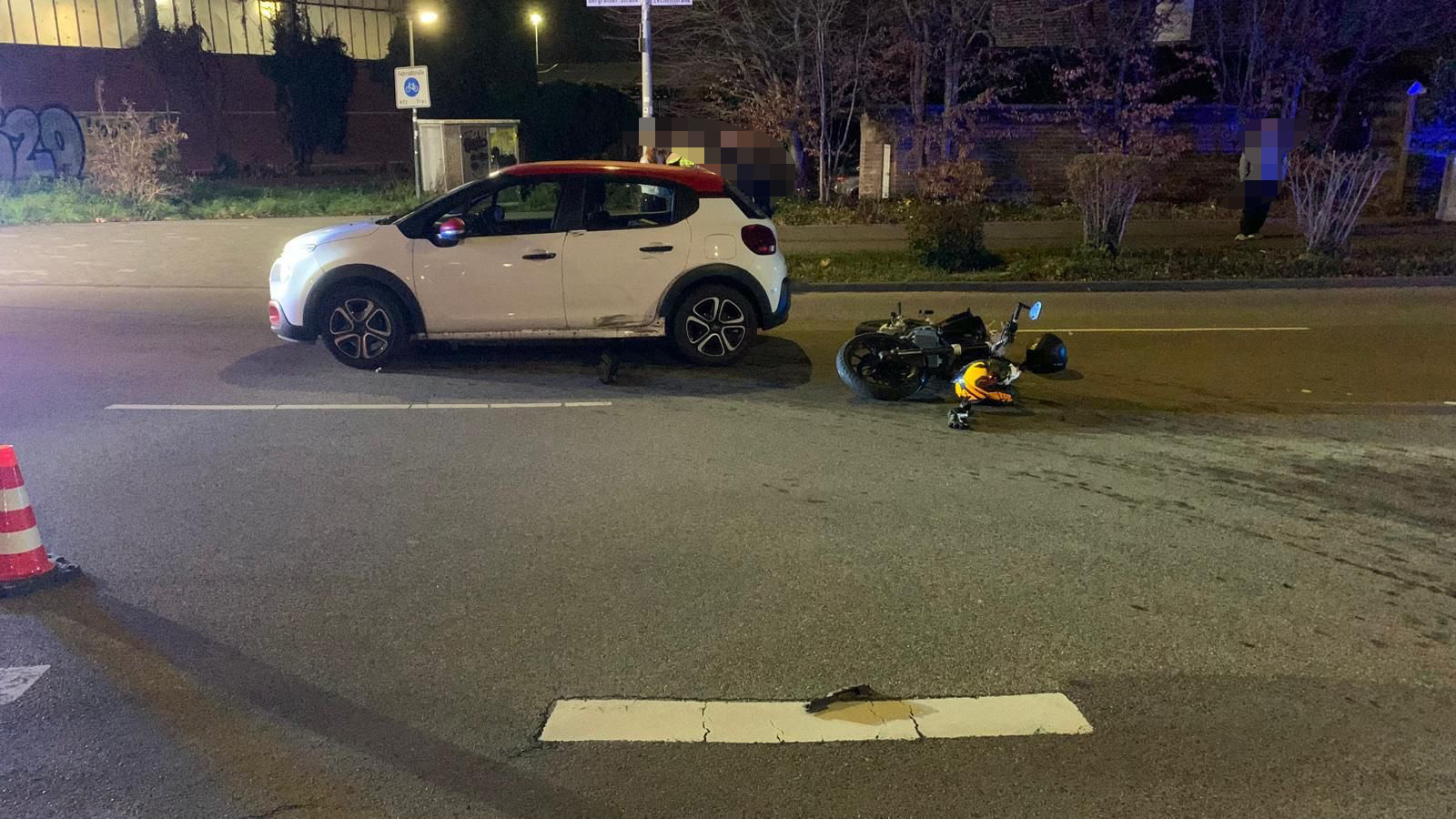 Noch während der Einsatz auf dem Stich nicht beendet war, erreichte uns die Meldung über den nächsten Verkehrsunfall. Ein PKW sowie ein Motorrad waren auf der Bergrather Straße kollidiert.
