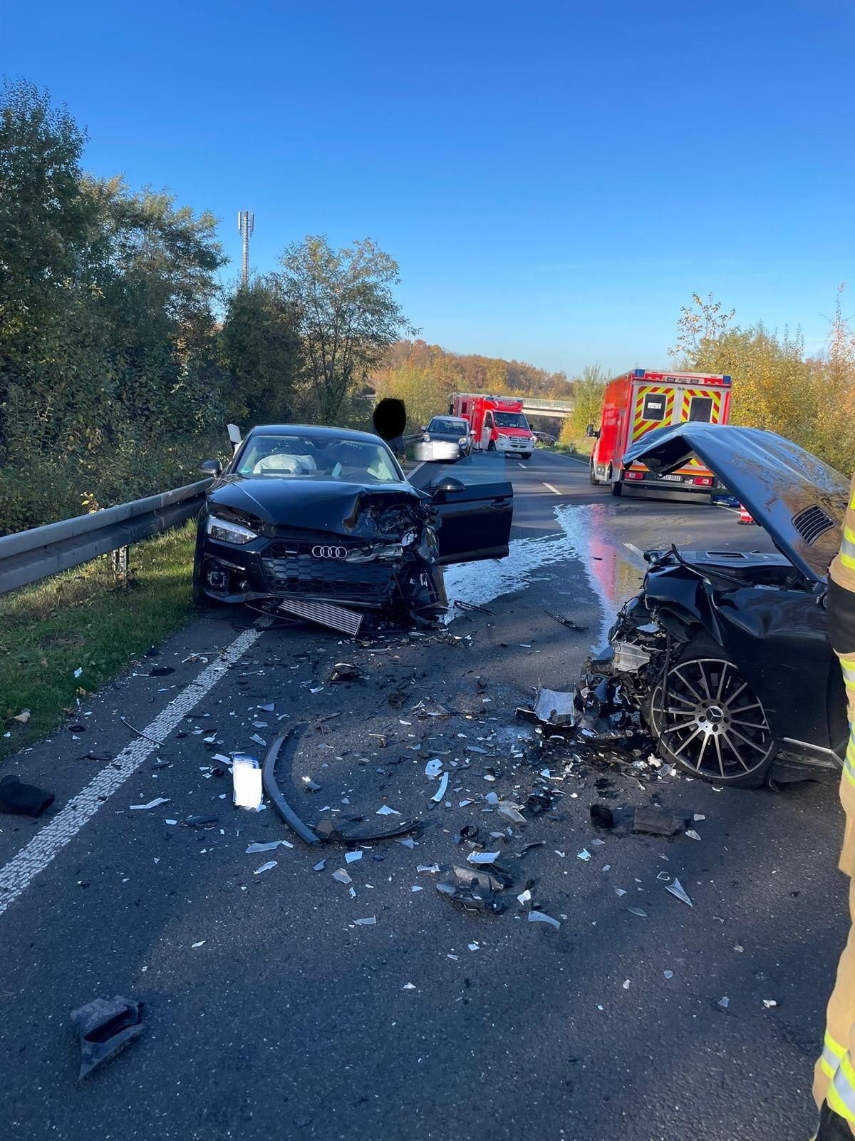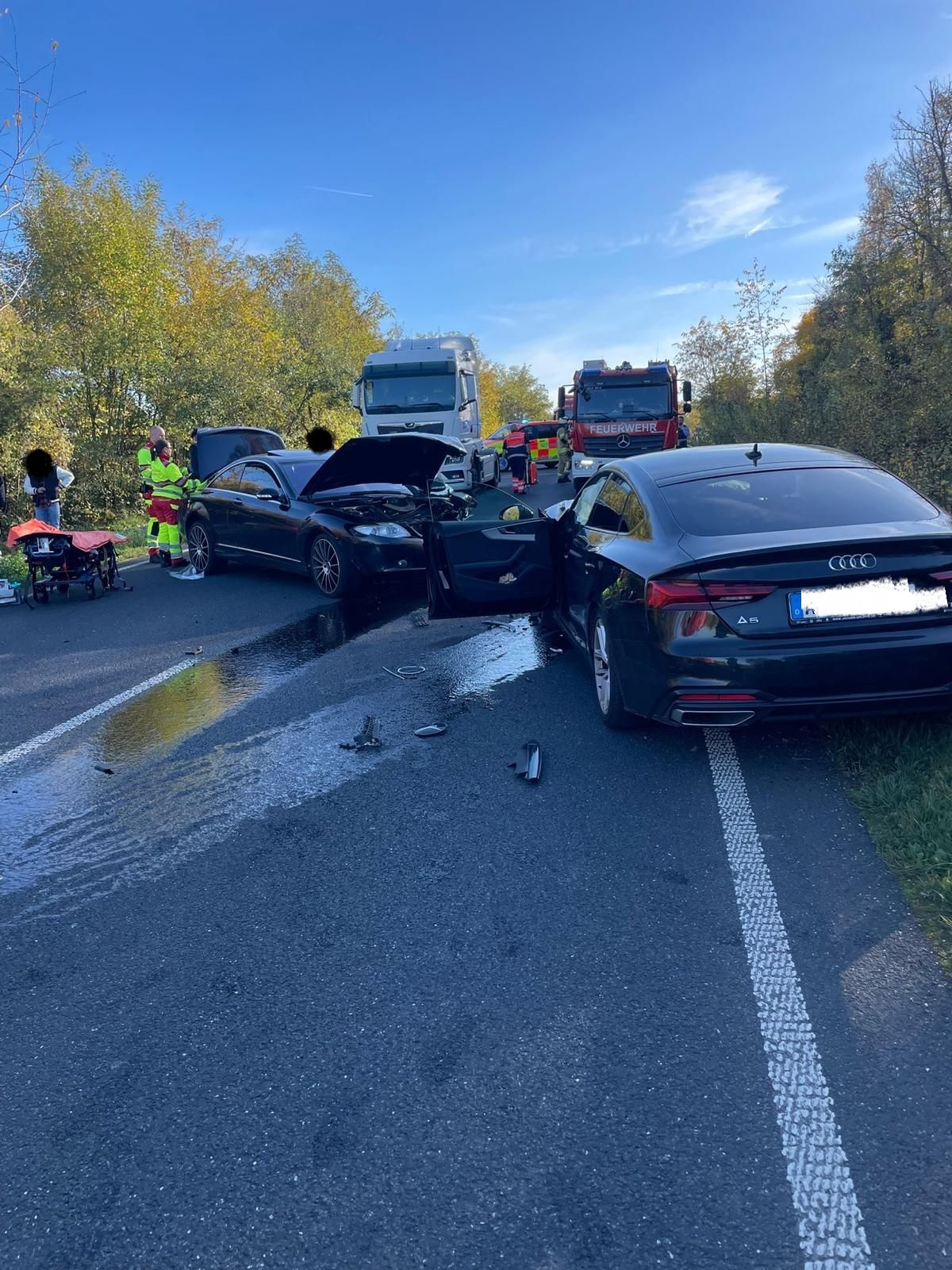 Vor Ort bestätigte sich das Meldebild. Zwei PKW waren frontal zusammengestoßen und wurden dabei stark beschädigt. Von den Fahrzeuginsassen wurden zwei Personen schwer und eine Person mittelschwer verletzt. Die Verletzten wurden unverzüglich durch den Rettungsdienst und unsere Feuerwehreinsatzkräfte untersucht und behandelt. Im Anschluss wurden sie zur weiteren Behandlung in Krankenhäuser transportiert.