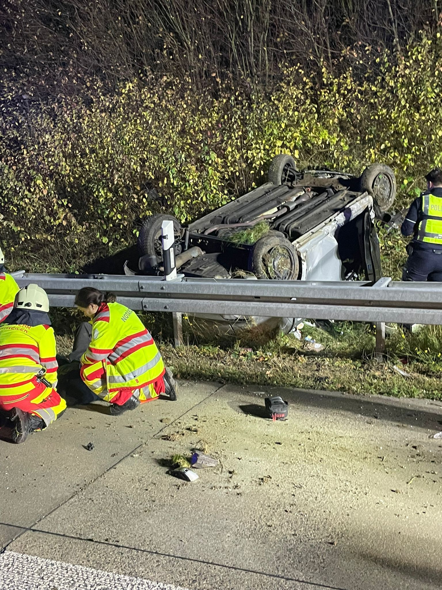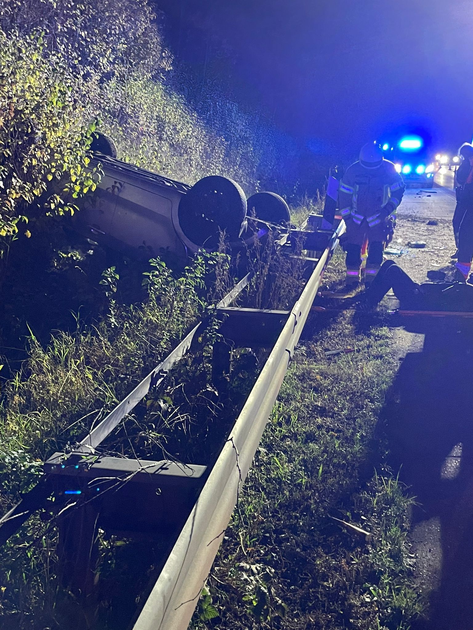 Auf der Autobahn zwischen den Anschlussstellen Eschweiler-West und Eschweiler-Ost verunfallte ein PKW aus bislang unbekannter Ursache ohne Kontakt mit einem weiteren Verkehrsteilnehmer. Der PKW überschlug sich und landete neben der Fahrbahn im Gebüsch.