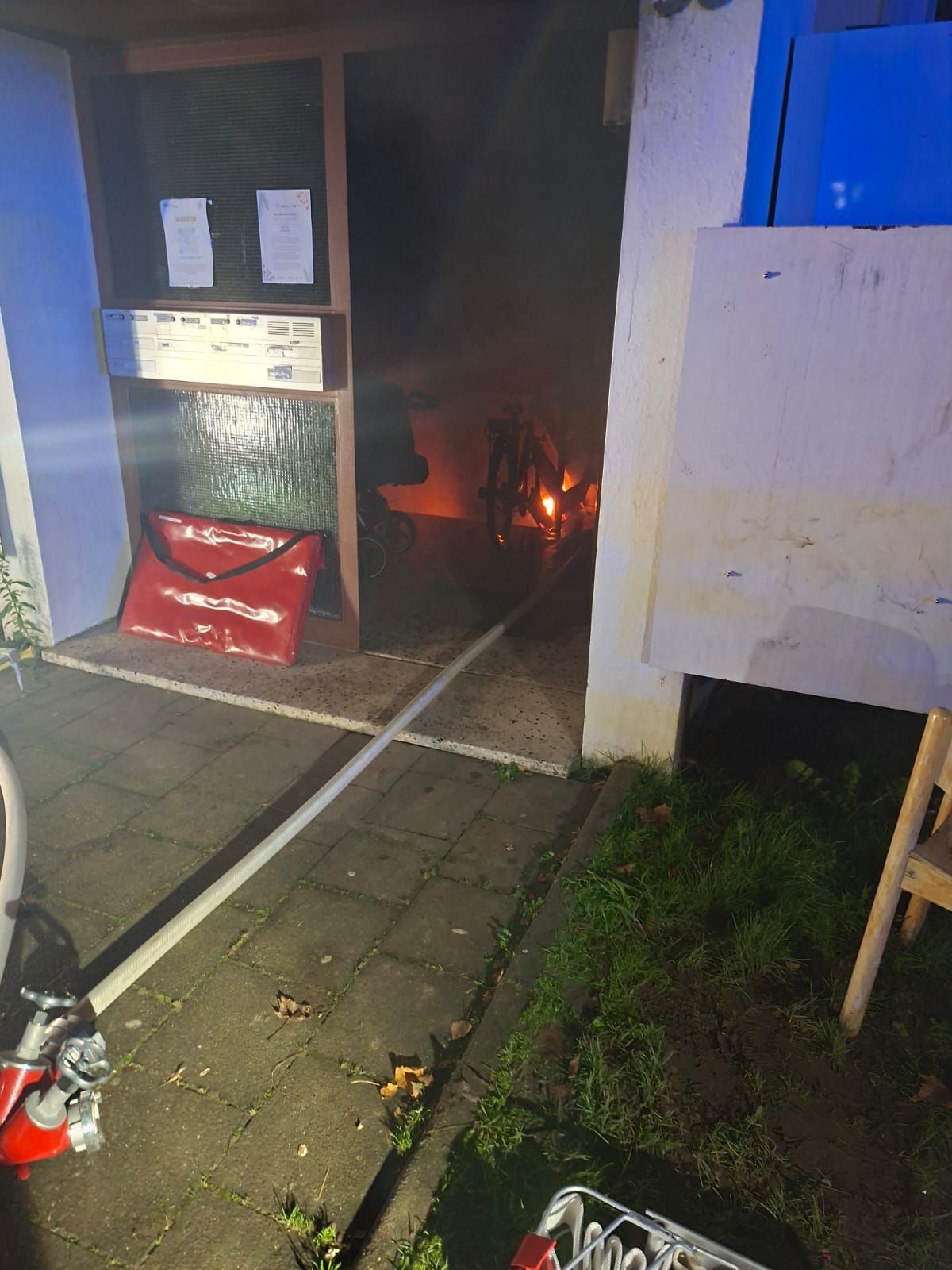 Parallel zur Menschenrettung begannen weitere Feuerwehreinsatzkräfte mit der Erkundung und Brandbekämpfung. Hierbei stellte es sich heraus, dass der Brand im Keller vermutlich durch einen Akku ausgelöst wurde. Der Brand konnte zügig gelöscht werden. Aufwändiger gestaltete sich die Entrauchung des Gebäudes. Neben dem Keller sowie dem Treppenraum war auch eine Wohnung verraucht. Mittels Hochleistungslüftung wurde der Rauch aus dem Gebäude verdrängt.