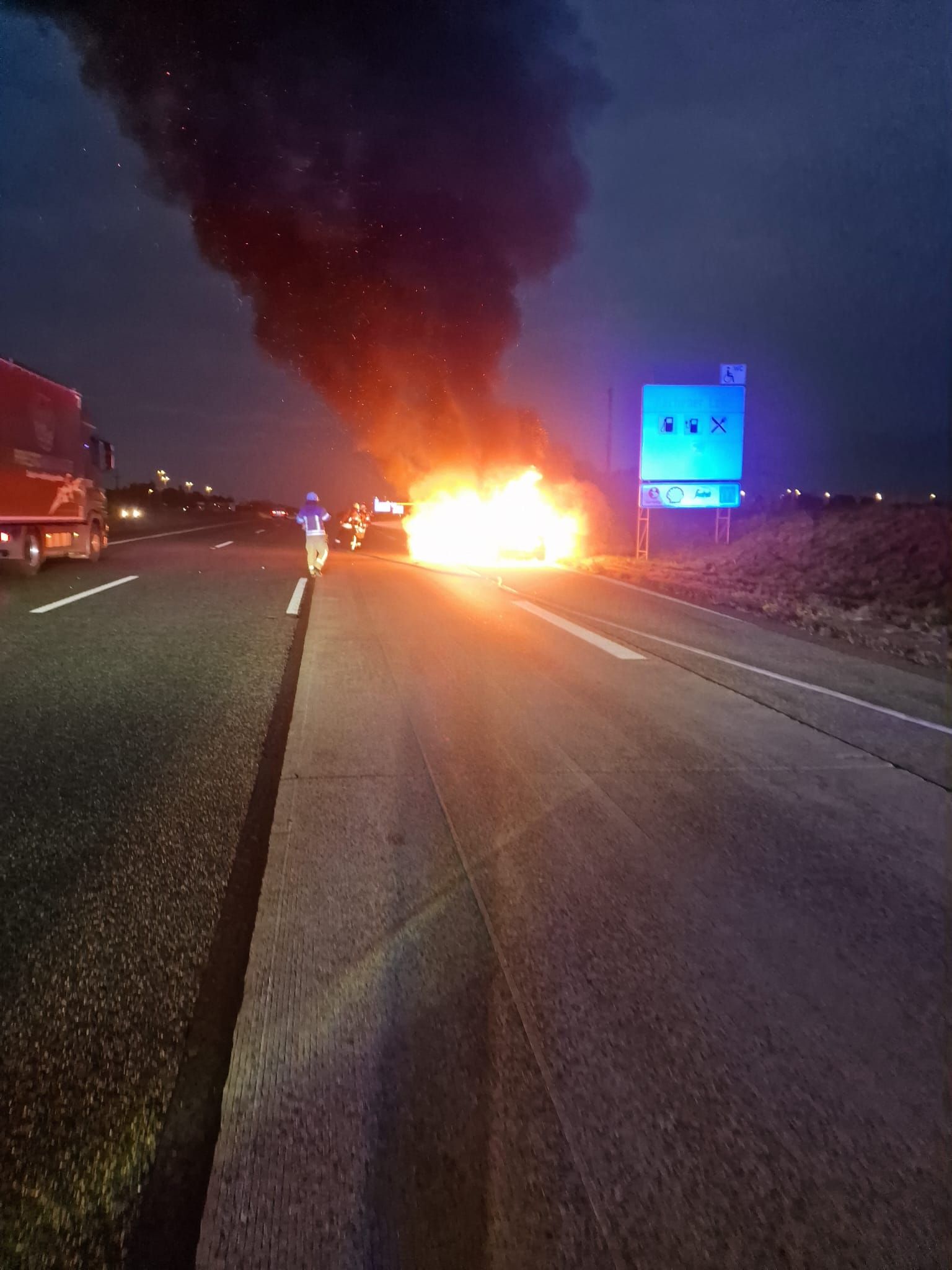 Bei Eintreffen unserer Einsatzkräfte stand der PKW auf dem Seitenstreifen bereits in Vollbrand. Unverzüglich wurde ein Löschangriff unter Atemschutz vorgenommen und der Brand erfolgreich bekämpft. Weitere Einsatzkräfte sichert die Einsatzstelle ab und leuchteten diese aus.