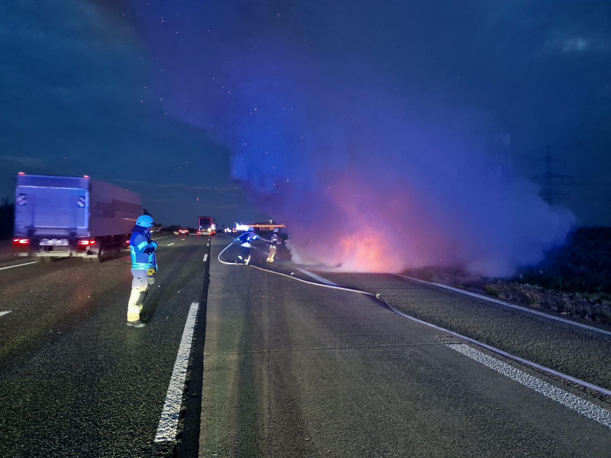 Während der Löschmaßnahmen mussten zwei Fahrstreifen gesperrt werden, so dass der Verkehr nur einspurig an Einsatzstelle vorbei geleitet werden konnte.