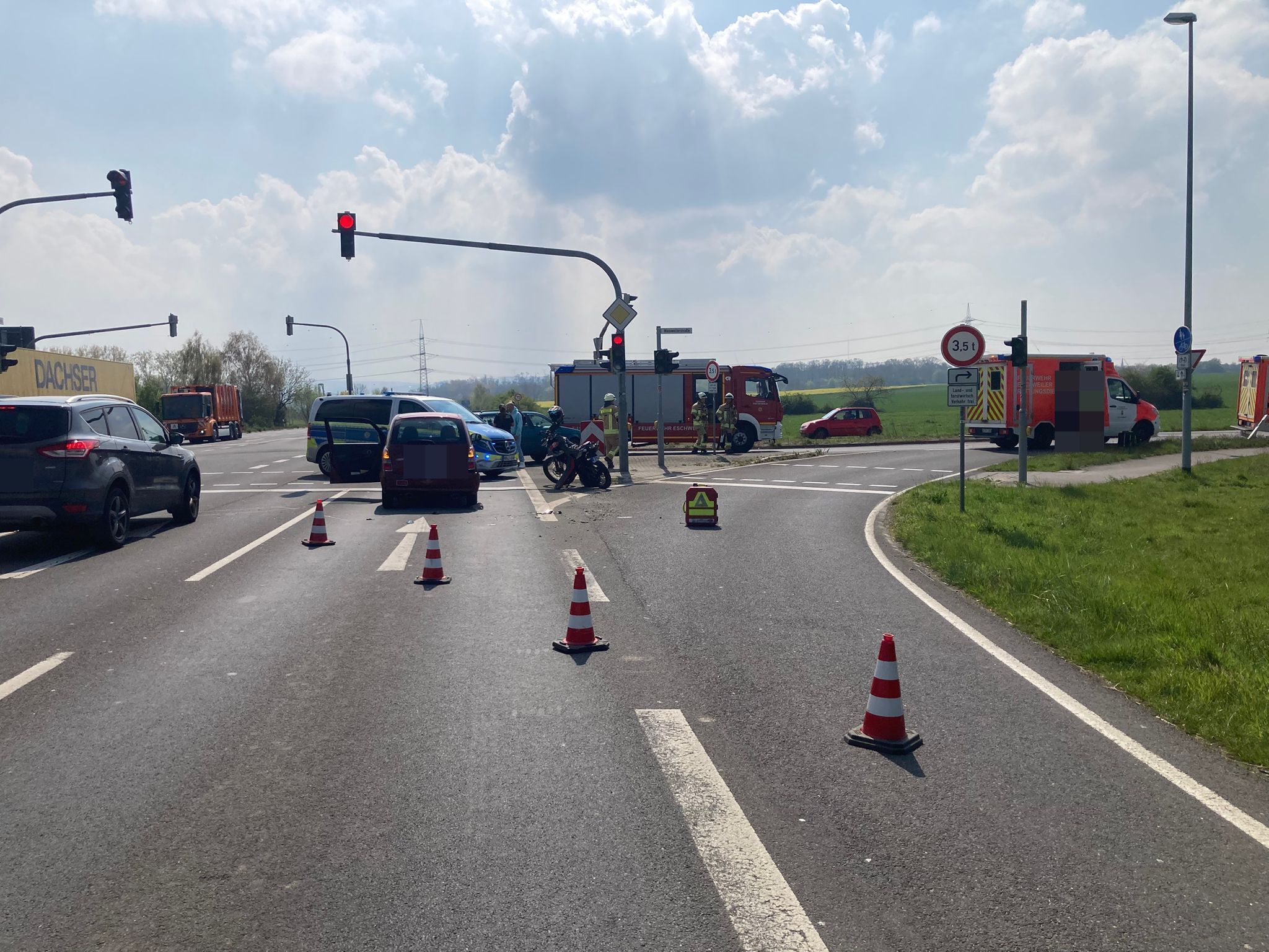 Im Kreuzungsbereich der Aldenhovener Straße mit der Hermann-Hollertith-Straße bzw. Weisweiler Straße ereignete sich am Dienstagnachmittag ein Verkehrsunfall. Ein PKW und ein Motorrad stießen hier zusammen.
