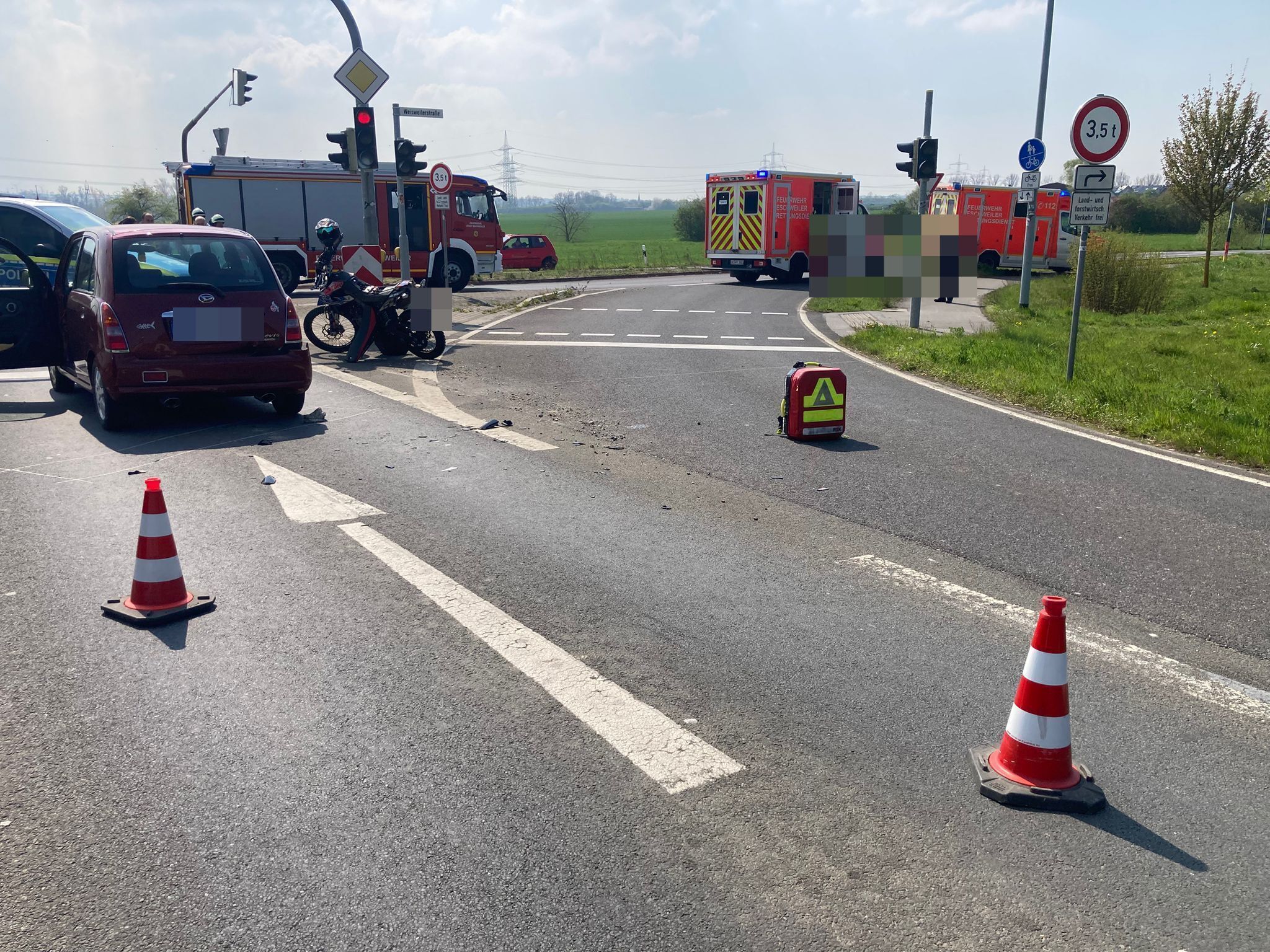 Ein mittelschwer- und ein leichtverletzter Verkehrsteilnehmer bei Kreuzungsunfall auf der Aldenhovener Straße.